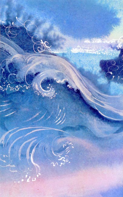 Но ничего уже не видел мамонт. Разбежался он, вонзил свои бивни в скалу, приподнял ее, чтобы бросить далеко в море, да вдруг скала сделалась тяжелой-тяжелой. Надломились от непомерной тяжести бивни и вместе со скалой рухнули в воду. Взревел тут от горя мамонт, протянул длинный хобот к воде, чтобы достать свои бивни, да так и застыл, окаменев --">- 1