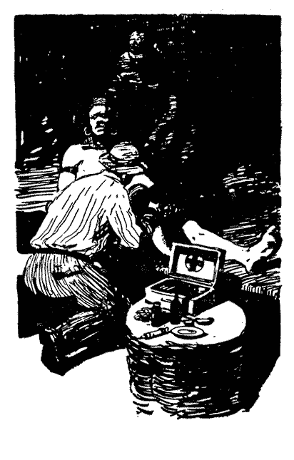 Майже щодня я вставав рано, ще до схід сонця, і ходив до малої затоки купатися. В цей час вода була особливо приємна. Вдень від сонця вона нагрівалась, як у лазні, і тільки опівночі ставала трохи холоднішою. Крім того, вранці затока була тихою, безлюдною, мене ніхто не турбував, і я плавав до повної знемоги. Одного такого ранку Гахар прибіг до затоки схвильований і ще здалеку збуджено закричав: — О Андо! Ходімо швидше, Андо! Уїн-уїн, Андо! — Що трапилось, Гахаре? — спитав я. Він сказав, що його дружина дуже хвора. Вчора була зовсім здорова, ходила на город полоти таро, набрала повну торбу кенгарових горіхів, поклала їх сушити на сонці, щоб легше було облущувати, потім зварила юшку з риби й бататів; вони повечеряли і полягали спати. А вночі вона почала стогнати і корчитись від болю в животі. Тепер вона була в дуже тяжкому стані. — Врятуй її, Андо! — благав Гахар. — Вона помре! Ходімо швидше, вилікуй її… — Риба, яку ви їли, була свіжа чи сушена? — спитав я. — Свіжа.