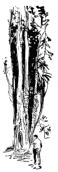 Троє японських поліцаїв з великим рудим догом дійшли до болітця. Пес захвилювався і рвучко натягнув ремінний поводок. Поліцаї бачили тепер, що стривожило собаку. Край болітця ясно відбився людський слід. Він був зовсім свіжий. Людина тут пила воду і звідси пішла в хащу, де починався вітролом. Відбитки слідів губилися в заростях папороті. Поліцаї стали радитись. Вони були дуже стомлені. Один з них шкутильгав, у другого на щоці засохла кров — сучок зірвав шкіру. Хутко насувався тайговий присмерк. — Ми далі не можемо йти, — сказав один з поліцаїв. — Мені здається, що ми заблудилися. Що ж до злочинця… — Він зовсім недалеко, — підхопив другий. — Подивіться на пса, як він рветься вперед. І ці сліди свідчать, що… — Почекайте, я вас помирю, — сказав третій. — Пес дійсно рветься, але це його особиста справа. Можливо, що справді він чує недалеко втікача. Ми ж нікуди далі не підемо і завтра повернемося назад. Але пса я пропоную зараз же одв'язати. Хай біжить. Коли він знайде злочинця, він зуміє затримати його без нашої допомоги. — Але… — Та не турбуйся. Пес загавкає, коли буде треба. І ми тоді поспішимо йому на допомогу. Поліцай відчепив од нашийника кінець поводка, і дог безшумно помчав у хащі, нюхаючи слід. Небезпека стає безмірно страшнішою, коли з'являється несподівано. «Кінець! Мене впіймали!» Юнак чекав, що зараз почує кроки й голоси людей, що зараз його схоплять. Проте минуло кілька секунд, які здалися вічністю, а навколо була, як і раніше, тиша й темрява, і тільки потихеньку ричав пес. Юнак хутко оговтався, і тоді нова думка пронизала його мозок: «Та це ж, напевно, Гохан!» Боячись поворухнутись, Володя тихим і спокійним голосом позвав: — Гохан! Ти не впізнав? Це ж я! Гохан! Ричання припинилось. Юнак обережно підвівся на лікоть. Гохан відступив, і Володі здалося, що пес навіть завихляв у темряві хвостом. «Отже, я не помилився: це ж справді Гохан!» І, скочивши на ноги, Володя тихо, але суворо наказав: — Гохан, іди геть! Іди геть! Пес постояв, потім повернувся, і вже оддалік під його лапою тріснула суха гілка. Володя був переконаний, що слідом за псом ідуть поліцаї. Не можна було залишатися тут і хвилини. Юнак знову рушив у путь. Але він знав, яка це надзвичайно важка річ — мандрувати тайгою вночі. До того ж навколо була страшна глушина, і зовсім невідомо, в який бік треба йти. Що, коли натрапиш просто на поліцейський загін? Володя сів на звалений стовбур дерева і так просидів до світанку. Він мало не плакав від жалю до себе самого. Такий він був маленький серед незайманої тайгової глушини. Але ні на мить не згасала в серці жива іскра палючого бажання — все перейти, все здолати, повернутись на батьківщину і врятувати батька. І тут виникали такі спогади, з'являлись такі рідні й кохані обличчя, що серце починало несамовито калатати в грудях, рватися на простір, наче воно було замкнене в тісній залізній клітці. Три дні йшов Володя крізь тайгу. Мучив голод. По дорозі їв корінці, рослини, ягоди. Потім пощастило вбити ломакою дятла. Він здався найсмачнішою стравою на світі. Іноді траплялися рябчики, але вбити їх було неможливо. Володя жалкував, що, тікаючи, покинув револьвер. Наприкінці третього дня шлях юнакові перетнули високі сопки, вкриті густим лісом. Володя вирішив, що треба йти навпростець. Досі хлопець ішов просто на північ. Не хотілося звертати з наміченого напрямк
