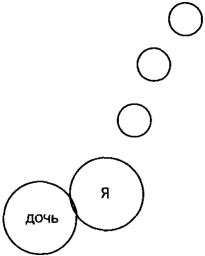 Мы спросили, почему друзья входят в состав семьи, на что он ответил, что, сколько себя помнит, у него всегда были очень тесные отношения с его друзьями, они всегда были для него членами семьи, сначала родительской, а теперь его собственной. — А как ваша жена относится к тому, что вы считаете своих друзей членами семьи? — Сначала даже злилась, может быть, ревновала, что они отнимают мое время, которое должно, как она считает, принадлежать ей. А сейчас смирилась. — Вы давно в браке? — 3 года. — А дети есть? — Нет, мы пока не можем решиться. Жена хочет делать карьеру, говорит, что сейчас модно рожать после тридцати, когда уже заложена прочная финансовая основа дальнейшего существования. — А сколько сейчас лет вам и жене? — Мне 28, жене — 27. — А почему вам так хочется завести собаку? — Не знаю, хорошо, когда собака в доме. — Но, видимо, для вас это важно, раз вы даже пришли на консультацию. — Наверное, важно. Для меня важно, что жена не хочет меня поддерживать даже в этом. Она не хочет детей, а хочет делать карьеру, хотя я говорю ей, что всех денег все равно не заработаешь. Она не хочет собаку, потому что собака будет связывать ей руки. Наверное, дети тоже будут связывать ей руки. — Так вы хотите детей? — Не то, чтобы хочу, но рано или поздно нужен ребенок. В принципе можно и сейчас. Ну ладно, ребенка без жены не заведешь, но я даже собаку не могу завести. — Посмотрите, вы сказали, что для вас важно, что жена не хочет вас поддерживать ДАЖЕ в планах заведения собаки. Она пока не поддерживает планов заведения ребенка. Другие ваши планы она разделяет? Например, проведение досуга, семейные расходы? — Досуг я предпочитаю проводить с друзьями, и она, конечно, этого не поддерживает, но сейчас хотя бы не скандалит. А семейные расходы… не знаю, она тратит свои деньги, я — свои. Ну, если крупные покупки, то скидываемся. Вообще, мы с женой как-то скучно живем, поэтому я и хочу собаку завести, чтобы был стимул домой приходить. — Вы сильно привязаны к жене? — Не знаю. Она — жена. Помните, как у Жванецкого: женился — значит, ночуй. Ну, вот и я. Женился, значит — приходи домой. Но домой как-то не очень тянет. В этом фрагменте проявляется боязнь принятия серьезного решения. Связь В. с женой — непрочная, на его рисунке семьи у его Я нет общих границ с границами его жены. Однако В. пока не готов принять на себя ответственность за свою жизнь, найдя другую партнершу, которая будет больше соответствовать его мировосприятию. В качестве паллиатива он хочет завести собаку. Мы полагаем, что собака, если она все же появится у В., будет играть свою роль домашнего стимула не слишком долгое время. В. подчеркивает, что для него крайне важно общение с друзьями, причем друзья рассматриваются им как члены семьи. Следовательно, собака, наличие которой будет требовать от В. обязательных прогулок, может начать восприниматься как тяжкая обуза. Завершая тему свободы, принятия решений и ответственности за себя и свою жизнь, мы не можем не привести еще один пример.Мы вдвоем