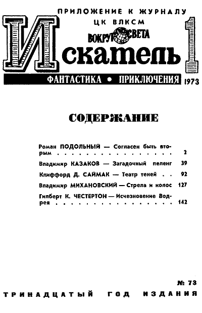 Обладая мгновенной реакцией, Розовый шар в момент гибели сумел передать на планету Шести Солнц несколько отрывочных радиограмм. Но и лучшие умы Лимены не сумели доискаться в них смысла. Некоторые догадывались, что, возможно, обрывки фраз, если их расшифровать, могли бы пролить свет на историю иной цивилизации, неизвестно только — существующей где-то или давно погибшей. Не один лименянский ученый пытался истолковать тексты: «Город — скопление большого числа индивидуумов на малом участке поверхности планеты, при одновременном наличии огромных свободных пространств». «Музыка — набор акустических колебаний различных частот, влияющих на психику индивидуума». «Пища — энергия звезды, однако потребляемая не в виде излучения, а через посредство злаков, корнеплодов, животных, в основном же — синтетически». Было и еще несколько обрывков, столь же непонятных. Поскольку все усилия расшифровать странные тексты ни к чему не привели, лименяне пришли к выводу, что, по всей вероятности, логическая система розового посланца нарушилась вследствие больших перегрузок. Поэтому было решено приступить к созданию нового, более совершенного посланца, но направить его не к Эпсилон Эридана, а в район Голубой планеты, обращающейся вокруг небольшого желтого светила. Эта звезда была расположена на самой окраине далекой галактики, имевшей сплюснутую форму…Гилберт К. ЧЕСТЕРТОН ИСЧЕЗНОВЕНИЕ ВОДРЕЯ