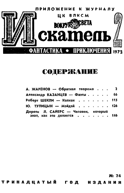 Милиционер легонько оттеснил старика от калитки, пропуская Шухова. На крыльцо вышел Кожохин, протянул руку, невесело улыбнулся. — Сюда, Павел Михайлович, — Кожохин предупредительно распахнул дверь. — Только аккуратней, не запачкайтесь. Закоптело тут все, к дьяволу. Я на кухне устроился. Опергруппу и понятых отпустил, труп отправил на экспертизу, а сам сел подумать. Неувязочки тут разные… — Что это за обходчик такой? — спросил Шухов, окидывая взглядом комнату, служившую, вероятно, гостиной. Мебели здесь почти не было. Раскрытый платяной шкаф, в нем набросана кучей мокрая одежда. На столе чемодан с откинутой крышкой. На спинке стула серый пиджак. Черные от сажи стены. — Железнодорожник, что ли? — Монтер городской электросети Назаров, — ответил Кожохин и, увидев, что взгляд Шухова задержался на осколках стекла, добавил: — Аквариум у него тут на подоконнике стоял. А зачем разбили его — непонятно. Так сказать, загадка номер один. — Разве есть и другие номера? — спросил Шухов, заглядывая во вторую комнату. — Я насчет загадок. — Есть, — откликнулся Кожохин. — Первосортные, должен сказать. В спальне пожар наделал больше бед. Мрачно чернела обуглившаяся кровать. На ней обгоревшие мокрые книги. Шухов придвинулся, осторожно перебрал их, полистал, пожал плечами. В голове мелькнуло: «Скажи мне, что ты читаешь, и я скажу, кто ты». Попробуй вот скажи. Сименон, Достоевский, Полевой, Ильф и Петров. Странный ассортимент. Что роднит этих писателей? Что привлекало в этих книгах Назарова? — Ну что ж, пойдем поговорим, Иван Петрович, — сказал Шухов. — Шофер твой мне уже кое-что доложил. Новый, смотрю, у тебя шофер, молодой, любознательный. Версии разрабатывает. — Интересуется, — сказал Кожохин. — Так вот. Из вещей тут еще будильник был. Я его тоже на экспертизу отослал. Мало ли что. Они вышли на кухню. Шухов сел на табуретку. Кожохин устроился рядом, сдвинул на край стола протоколы. — Два дня назад Назаров продал дом старику Комарову, Видели его? Шухов кивнул. — Импозантный старикан. — Комаров тут, на «нарыве», — фигура, — сказал Кожохин. — Богатый старик, держит пасеку. Медом торгует на базаре. Собрался сына женить. Вот и купил дом. Сделку они с Назаровым оформили как полагается. Деньги Назаров взял наличными. Семь тысяч рублей. Странно, правда? Кто сейчас такие суммы берет наличными? Ну вот. Комарову Назаров сказал, будто бы, что из дома съедет в понедельник. А в субботу вечером вдруг заказал такси на воскресенье на четыре утра. Говорил я с диспетчером парка. Машину они послали, как обычно, минут за пятнадцать до назначенного часа. Девушка эта, диспетчер, перед тем как отправить такси, позвонила Назарову. Он ответил, что уже встал и будет ждать машину на улице. Таксист подогнал автомобиль к дому без нескольких минут четыре и увидел пожар. Пока тут ничего странного нет. Правда? — Пожалуй. И потом я это слышал, — сказал Шухов. — Таксист вызвал пожарных… — А они нас, когда увидели труп. В кармане пиджака, что на стуле висит, мы нашли билет на поезд в четыре тридцать до Сочи. Похоже, что Назаров укладывал чемодан, когда его убили. Денег в доме не обнаружили. Кожохин порылся в бумагах, лежащих на столе. — Теперь слушайте внимательно, — сказал он. — Начинаются странности. Соседи, которых я опросил, говорят, что к Назарову ходила женщина. Некая Елизавета Мокеева. Работала она кио