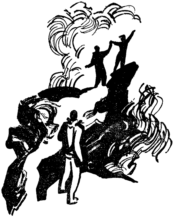 Оглушенный Владимир не сразу понял, когда стих неистовый вой двигателя. А когда понял, осторожно приоткрыл глаза и, морщась от боли, приподнялся на локте. Тяжело дыша, он напряженно вглядывался в дымно-багровую клубящуюся завесу пыли. Что она скрывала за собой? Пыль оседала, понемногу стали вырисовываться остроносый старбот… и силуэт космонавта, казавшийся из-за оптического обмана сказочным гигантом — почти таким же большим, как и сам спасательный корабль. Мгновенье постояв неподвижно, сказочная фигура сделала неуверенный, ведь ничего не было видно, шаг вперед. — Мы здесь! — из последних сил крикнул Владимир и, почти теряя сознание, откинулся на спину. Он уже не видел, как Ришар, перепрыгивая с камня на камень, бежал к космонавту. Одежда на Ришаре обгорела, волосы были опалены, но он смеялся, размахивая руками и во весь голос орал что-то восторженное и бестолковое.Дороти Л. САЙЕРС ЧЕЛОВЕК, КОТОРЫЙ ЗНАЛ, КАК ЭТО ДЕЛАЕТСЯ