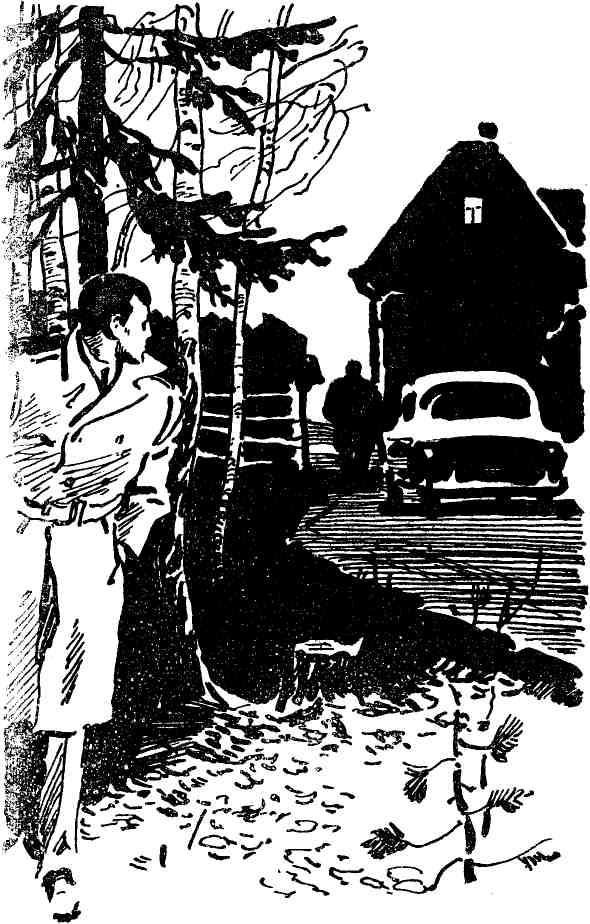 Я замерз. Стоять здесь было, наверно, не только смешно, но и бессмысленно. Конечно, Теодора ждала кого-то, однако долгожданный гость мог и вовсе не явиться. Я посмотрел на часы: больше у меня не было времени, Дамбит давно уж вернулся. Я медленно зашагал к шоссе. И не успел я дойти, как в сторону Залюмов проехал синий «Москвич». За рулем сидел мужчина, и, если зрение меня не обмануло, молодой. Вспыхнул охотничий азарт. Я быстро записал номер машины и кинулся опять под защиту своей елочки. В эту минуту водитель синего «Москвича» вошел в дом Залюмов.