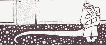 Двое в комнате. Она закончила говорить, и он уже уходит. Он не прощается, зачем, это не нужно, всё равно же он понимает всё то же, что и она. Хотя познакомились они только сегодня утром, два часа тому назад. Хотя он не говорит ни слова, просто молча сидит. Но они уже знают друг о друге всё и это всё — самое главное, они уже могут друг другу бесконечно доверять. Когда он уходит, она осматривает свою руку и обнаруживает в уголке на сгибе возле локтя маленький синий крестик, как будто шариковой ручкой. Она не пытается его стирать. Она же все понимает без слов. Она понимает всё то же, что и он. Она знает, что это бесполезно. Она просто садится отдыхать в дальнем углу комнаты, возможно дальше от закрытого окна. Она ничего не делает. Она никогда ничего не делает. Она начинает ждать. Ждать того, что с ней будет. Как она ждет этого каждый день. Для неё в этом нет никакой разницы. Включает радио. Нет, в дверь никто не позвонит. И никто за ней не придёт. Она была бы рада, чтобы хоть кто-то пришёл. Маленький крестик на сгибе её руки быстро разрастается, на глазах превращается в довольно большое пятно, которое потом занимает всю руку и растёт, распространяясь в область сердца.