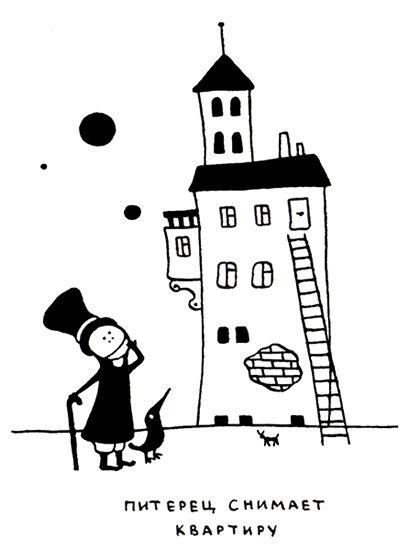 Хорошо, если будущая квартира питерца чем-нибудь этаким отличается от всех прочих квартир. Например, отдельный вход со двора, а лучше — с улицы, а лучше — по приставной лесенке на третий этаж — это очень хорошо. Мансарда — тоже хорошо. На крайний случай сойдет какой-нибудь эркер. Но лучше всё-таки башенка. Водопровод? Интернет? Телефон? Метро закрыто на ремонт? Ну и плевать. В такой квартире здорово и не скучно без всякого интернета. И уходить из нее совсем не хочется. Беззаботным питерцам обычно везет: интернет можно подворовывать у соседей, тайно расплачиваясь подсунутыми под дверной коврик жетонами на метро (которое закрыто на ремонт), а за углом обнаруживается целый выводок маршруток.