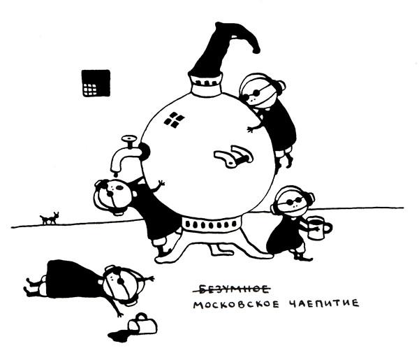 Дома, конечно, питерец пьет чай, очень горячий, чтобы согреться — потому что у него малокровие, батареи всю зиму холодные, электронагреватель сперли молдавские водопроводчики, приходившие чинить батареи, и вообще есть нечего, потому чтожена-стерва не хочет готовить (муж-поэт не хочет зарабатывать). А москвич — тот дома пьет водку. Потому что он тоже живой человек и выпить ему хочется.