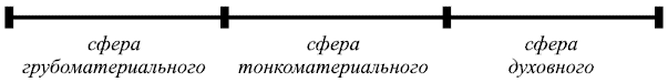 Существуют три качественно отличающихся сферы бытия, которые, тем не менее, образуют единый континуум. Это: сфера грубоматериального, сфера тонкоматериального (промежуточная), она же, если посмотреть с другой стороны — сфера «грубодуховного» и, наконец, сфера духовного (см. рис. 1).