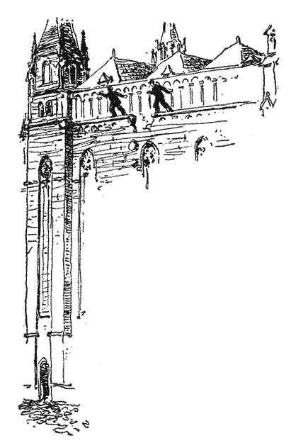Темрява ночі спалахнула червоними й білими іскрами. Коли іскри погасли, Воробйов побачив: злочинець біжить по даху до карниза головного шпиля.