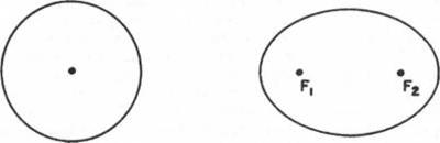 Рис. 6. У окружности один центр, у эллипса — два фокуса.