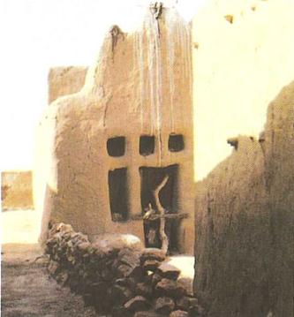 Дом догонского жреца около Санга, Мали. На стене здания видны следы возлияния, посвященного Амме — единственному богу догонов. © А. Коста.