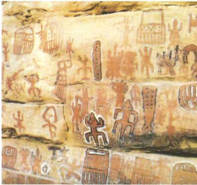 Древние пиктограммы, сохранившиеся на стенах священной пещеры в Сонго, Мали. Догоны используют эту пещеру для своих религиозных церемоний на протяжении многих столетий. © А. Коста.