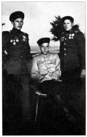 Якушин И.А. и сержанты Сухоловский и Чернов. Сержант Сухоловский — полный кавалер ордена Славы. Оба сержанта участвовали в битве за Сталинград и позднее в Параде Победы.