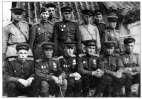 Комбат Агафонов и командиры взводов ПТО лейтенанты Зозуля Е.К. и Якушин И.А.