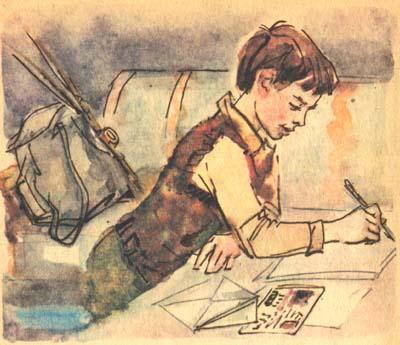 «Здорово, Генка! Получил твое письмо. Давай сегодня вечером пойдем на рыбалку. У меня крючки новые.— Тут я задумался, потому что не знал, что дальше писать. Я посмотрел в окно. На улице шел дождь. И я написал: