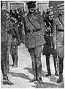 Союзники: Генерал Р. Гайда (слева) и представитель Франции генерал М. Жанен (справа) встречают Колчака на омском вокзале