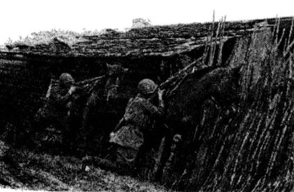 На рассвете 13 января после небольшой артподготовки наш полк ринулся в атаку. Преодолев Волхов по льду, мы подошли к западному берегу реки, где немцы оборудовали свои позиции. Действующие в боевых порядках орудия прямой наводкой разрушали дзоты и разбивали пулеметные площадки противника. К 14 часам наша дивизия прорвала немецкую оборону на участке Бор — Красный поселок и вечером заняла деревни Бор, Костылево, Арефино, Красный поселок. Утром 14 января дивизия завязала бой за деревню Коломно, овладеть которой смогла только 19 января при помощи соседа. Несколько дней дивизия вела напряженные бои за Спасскую Полисть, но преодолеть сопротивление врага не смогла. Запомнился бой за деревню Коляжка, которая была расположена в 3 км севернее Спасской Полисти на шоссе Ленинград — Новгород на западном берегу р. Полисть. 30 января наш полк подошел к деревне и занял кладбище, которое вместо ограды было обнесено земляным валом с глубокой канавой. В плане кладбище было размером 100 на 200 м. В канаве мы оборудовали глубокие окопы, легко выбросив из нее снег. В предыдущих боях мы устраивали снежные брустверы или прятались в воронках, так как углубиться в мерзлую землю не могли. Во время боя за кладбище противник подбил два наших танка Т-60, которые горели костром. С наступлением темноты бой стих. В нашем батальоне в стрелковых ротах оставалось по 17–20 человек, но пульроту все время пополняли бойцами из других рот, так как для перевозки на лыжных установках пулеметов «максим» нужны были люди. Комбат дал команду сняться из окопов кладбища на ужин к походной кухне, которая находилась в расположении полка на опушке леса в 800 м от места боя. Здесь нас хорошо накормили горячим. А ведь все предыдущие дни нам приносили в котелках ледышки — пища успевала за время переноса по морозу превратиться в лед. После сытного ужина мы заняли оборону, не доходя до кладбища, вырыв в глубоком снегу одиночные окопы. Поскольку комроты лейтенант Носовский выбыл, то командование ротой принял я — командир 1-го пулеметного взвода. Комполка капитан Троцко, узнав, что мы оставили позиции на кладбище, вызвал меня и приказал немедленно занять оставленные позиции. Мы снова стали продвигаться к кладбищу. На полпути увидели на огневой позиции 45-миллиметровое орудие и телефонистов с аппаратом, которых вечером не было. Немцы регулярно освещали местность перед деревней осветительными ракетами, и нам пришлось все время ложиться в снег. В результате мы не дошли до кладбища и с рассветом 31 января окопались в поле перед кладбищем в глубоком снегу. На рассвете немцы открыли сильный минометный огонь по опушке леса, который продолжался 40 минут, а затем три немецких самолета сильно бомбили опушку, где располагался наш полк. Из деревни вышел тяжелый немецкий танк и занял позицию за нашими сгоревшими танками. Орудие немецкого танка било поверх наших подбитых танков и, прикрываясь ими, открыло прицельный огонь по позициям полка на опушке леса. Я послал солдата к 45-миллиметровой пушке для указания цели, но солдат не вернулся — видно, убили. Под прикрытием огня с танка двинулась цепью немецкая пехота. Заработали наши пулеметы, пехота немцев залегла и перебежками стала продвигаться в сторону позиций 1-й и 2-й стрелковых рот. Пошли в ход ручные гранаты. Телефонист с аппаратом, мимо которого мы прошли ночью