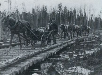 Болотная «дорога». 1942 г. Фото Гудлаха
