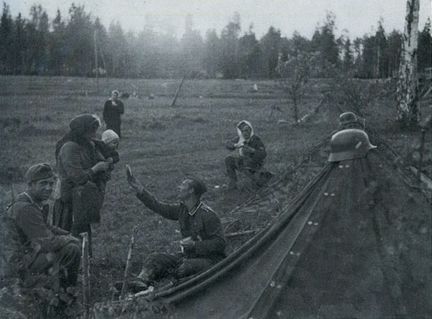 Немецкие солдаты делятся едой с беженцами. Фото Гудлаха