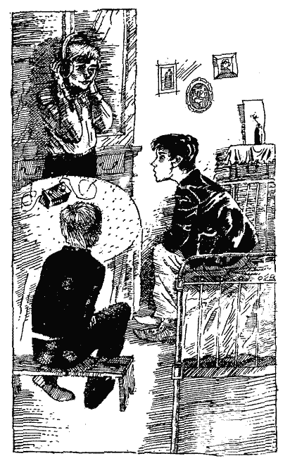 Славка не хотів втручатися. До таких справ він тепер байдужий. Романтика скінчилася. Чи не була ця романтика лише дитинством, милим, захоплюючим, мрійливим? Хтось украв вагон? Вагони крадуть десятками й сотнями. Хтось хабарник? Усі хабарники. Хтось заплутався в афері? Ну й що? Миша хороший хлопець, але він відстав, застряв у тому самому милому, захоплюючому, мрійливому дитинстві. Він не такий прямолінійний, як Генка, але обидва вони живуть у минулому: час змінився, вони — ні. Однак Юрків прихід змусив його задуматися. Юра тремтить від страху, це ясно! Загроза нависла над Мишею — ось що збагнув Славка. Миша в небезпеці, встряв у справу, де вбивають, хоче виручити Вітьку Бурова, свого найлютішого ворога, через те, що за його, Мишиним, переконанням, Вітька не винен, Миша завжди втручався і втручатиметься у такі історії, повсякчас шукатиме справедливості. Він не знає страху — дивовижний хлопець! Йому потрібне відкрите небо, а не стеля над головою. Суворий, незламний Миша Поляков захищає Вітьку, а він, доброзичливий, м'який, чуйний Славка, не захищає, відсторонився, умив руки. Це дуже добре й зручно: переживати власну журбу і відсторонитися од чужих нещасть. Чому? Що з ним сталося? Покинула мати? В Генки мати померла, він багато років живе в тітки, Миша Поляков усе життя прожив без батька. Змушений заробляти? Хіба мало хлопців працює на виробництві? Колись він жив набагато краще за своїх товаришів, вони жили бідно, голодно, але не скиглили, не бідкалися, не занепали духом. Чому Юра прийшов до нього, а не до Миші? Тому, що покидькові Юрі він ближчий, ніж Миша. Сумно, але факт. Вони обидва бачать лише один бік життя. Різниця в тому, що Юра його визнає, а він, Славка, ні. Наслідком цих роздумів була зустріч, цього разу в Миші. Славка й Генка просто прийшли до нього. Без будь-яких пояснень. Вони були й залишилися друзями, ніщо не могло їх розлучити. Вони знову разом, знову заклопотані однією справою — цього достатньо. — Юрка даремно не з'явиться, — сказав Миша, — тільки побивається він за себе. — Може, його Навроцький підіслав, — розмірковував Генка. — Він на грані відвертості, — озвався Славка. — Але як примусити його заговорити? — Сказати Свиридову, — запропонував Генка, — нехай викличе. — Я намагався давати поради Свиридову, — сказав Миша, — він мене швидко спровадив… Треба, щоб Юра сам пішов до нього. — Хіба його умовиш? Подзвонили, хтось зайшов у квартиру, постукав у Мишину кімнату. — Заходьте! — крикнув Миша. Відчинилися двері, і на порозі з'явився Юра, оглянув усіх. — Привіт! — Привіт! — Усі в зборі, — сказав Юра, — от і прекрасно. Я давно чекав нагоди, коли ви будете разом. У мене є дещо вам розповісти.