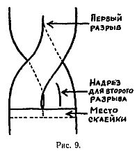 Другой вариант изображен на рис. 8, первое разрывание дает одно большое кольцо, а второе — два сцепленных.
