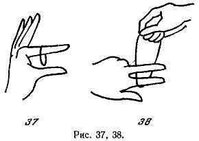 Вследствие этого и все кольцо свободно соскочит с указательного пальца и повиснет на среднем, как это показано на рис. 40.