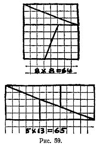 Парадокс шахматной доски В близкой связи с парадоксами, рассмотренными в предыдущей главе, находится другой класс парадоксов, в котором «принципом скрытого перераспределения» объясняется таинственное исчезновение или появление площадей. Один из самых старых и самых простых примеров парадоксов этого рода приведен на рис. 57.
