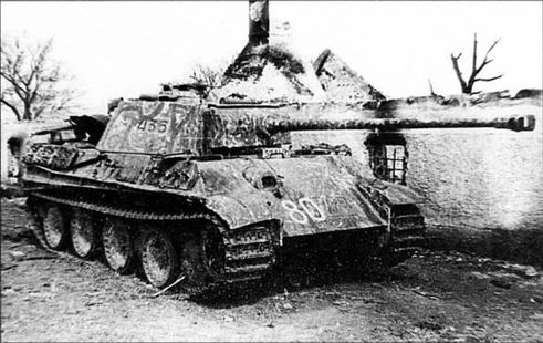 Германский танк Pz.Kpfw.V Ausf.G «Пантера» на одной из улиц Познани. Он получил две сквозные пробоины в переднюю часть корпуса. 1-й Белорусский фронт, 19-я танковая дивизия вермахта, февраль 1945 года (АВЛ)