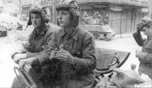 Гвардии сержант Т. П. Ляпин — башенный стрелок танка М4А2, первого из ворвавшихся в Вену. Австрия, апрель 1945 года (АВЛ)