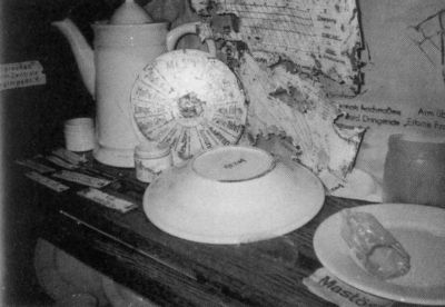Залепленный грязью ящичек для столовых приборов, найденный Чаттертоном. На дне лежит нож с вырезанным на ручке именем члена экипажа.