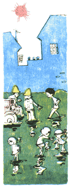 Кларенс вышел из дому и направился к таверне “Гнутый пятак” на углу. — Хочешь, чтобы у тебя что-нибудь исчезло, Нокомис? — Да вот я не прочь расстаться со своим брюхом. — Если я сделаю так, что оно у тебя исчезнет, вместо живота у тебя будет дыра, и ты умрешь от потери крови. — Пожалуй, ты прав, парень. А почему бы тебе не попробовать Исчезатель на пожарном гидранте во-оо-он там, у ворот? Это был, несомненно, самый счастливый день для ребятишек всей округи. Они сбегались отовсюду поиграть на затопленных улицах и переулках, и если кто-нибудь из них утонул во время этого наводнения (мы совсем не утверждаем, что кто-то утонул, хотя это и был настоящий потоп), ну что ж, этого следовало ожидать. Пожарные машины (слыханное ли дело, пожарные машины были вызваны для борьбы с наводнением) стояли по крышу в воде. Полицейские и санитары бродили по затопленным улицам, мокрые и озадаченные. — Возвращатель, Возвращатель, кому нужен Возвращатель? — тонким голоском кричала Кларисса Уиллоугби. — Да замолчишь ты наконец? — сердито прикрикнул на девочку один из санитаров. — И без тебя полно хлопот! Нокомис, буфетчик из таверны “Гнутый пятак”, отозвал Кларенса в сторону. — Пожалуй, я пока никому не скажу о том, что случилось с пожарным гидрантом, — сказал он. — Если ты не скажешь, я тоже никому не скажу, — пообещал Кларенс.