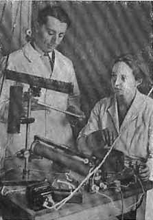 Ирен Кюри и Фредерик Жолио в Институте радия. 1935.