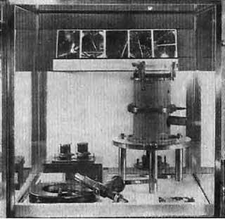 Усовершенствованная камера Вилсона, сконструированная Фредериком Жолио и использованная им во всех совместных с Ирен Кюри работах по исследованию нейтронов, позитронов и по открытию искусственной радиоактивности. (Музей Института радия в Париже.)