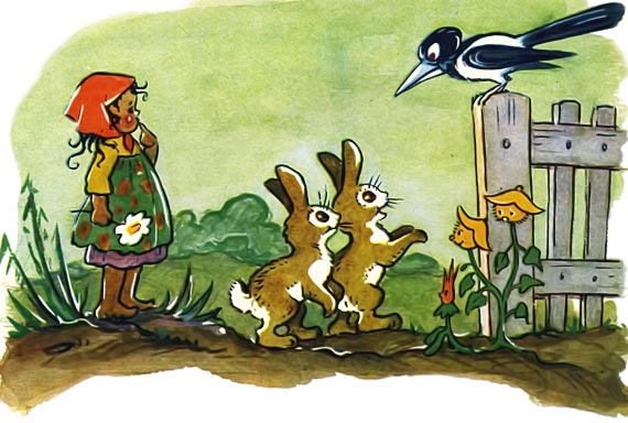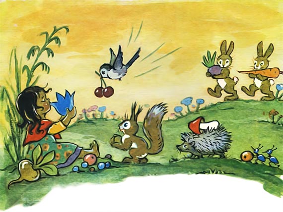 И девчушка убегает.
