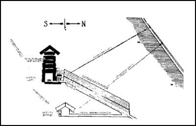 Теперь Нинурта находился в запретной («священной») комнате, из которой протягивалась «Сеть» (радар?), «охватывавшая Небеса и Землю». Хрупкий механизм размещался в пустотелом каменном ящике[73], который был установлен точно на оси север-юг Пирамиды и резонировал, подобно колоколу. Главной частью этого устройства являлся камень ГУГ («Определяющий Направление»); его излучение, усиленное четырьмя полостями над комнатой[74], направлялось наружу и вверх по двум наклонным каналам, ведущим к северной и южной граням пирамиды. Нинурта приказал уничтожить этот камень: «Потом по приказу Нинурты, определяющего судьбы, в тот день был камень ГУГ из отверстия вынут и разбит на части»[75].