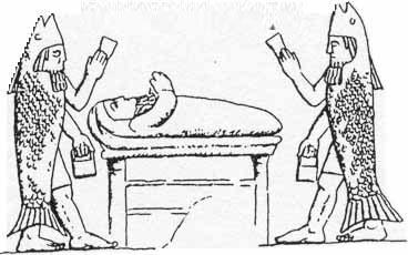 Сохранились сведения о том, что плавающий учитель Oannes передавал знания неолитическим народам Персидского залива. Народы те тогда жили как животные, в полях. Oannes был похож на рыбу, одаренную разумом. Имел голову с человеческими чертами, ноги и рыбий хвост. Его голос имел человеческое звучание. Он обучил людей элементами письма, науки, металлургии, искусствам, способам построения городов, храмов, он учил принципам геометрии. Короче, «гуманизировал» население. Когда солнце садилось, он возвращался на ночь в глубины — был амфибией.
