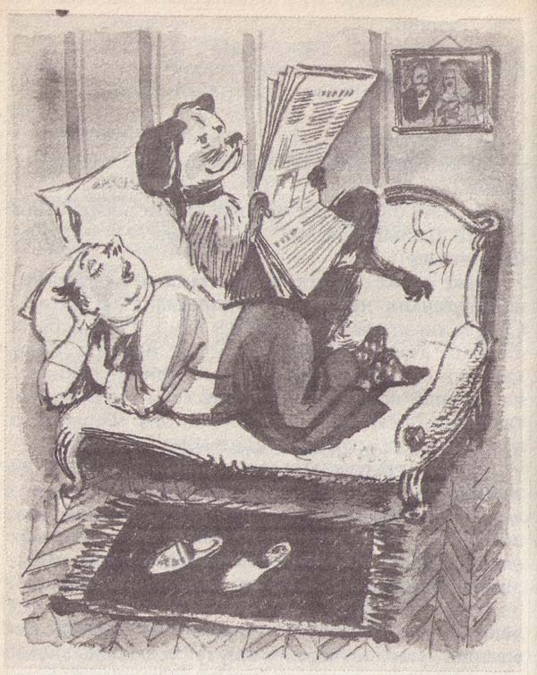 Фердинанд снова принялся читать газету с самого начала. Но он все уже знал, и газета быстро ему надоела. Сощурив глаза, Фердинанд принялся рассматривать ноги хозяина.