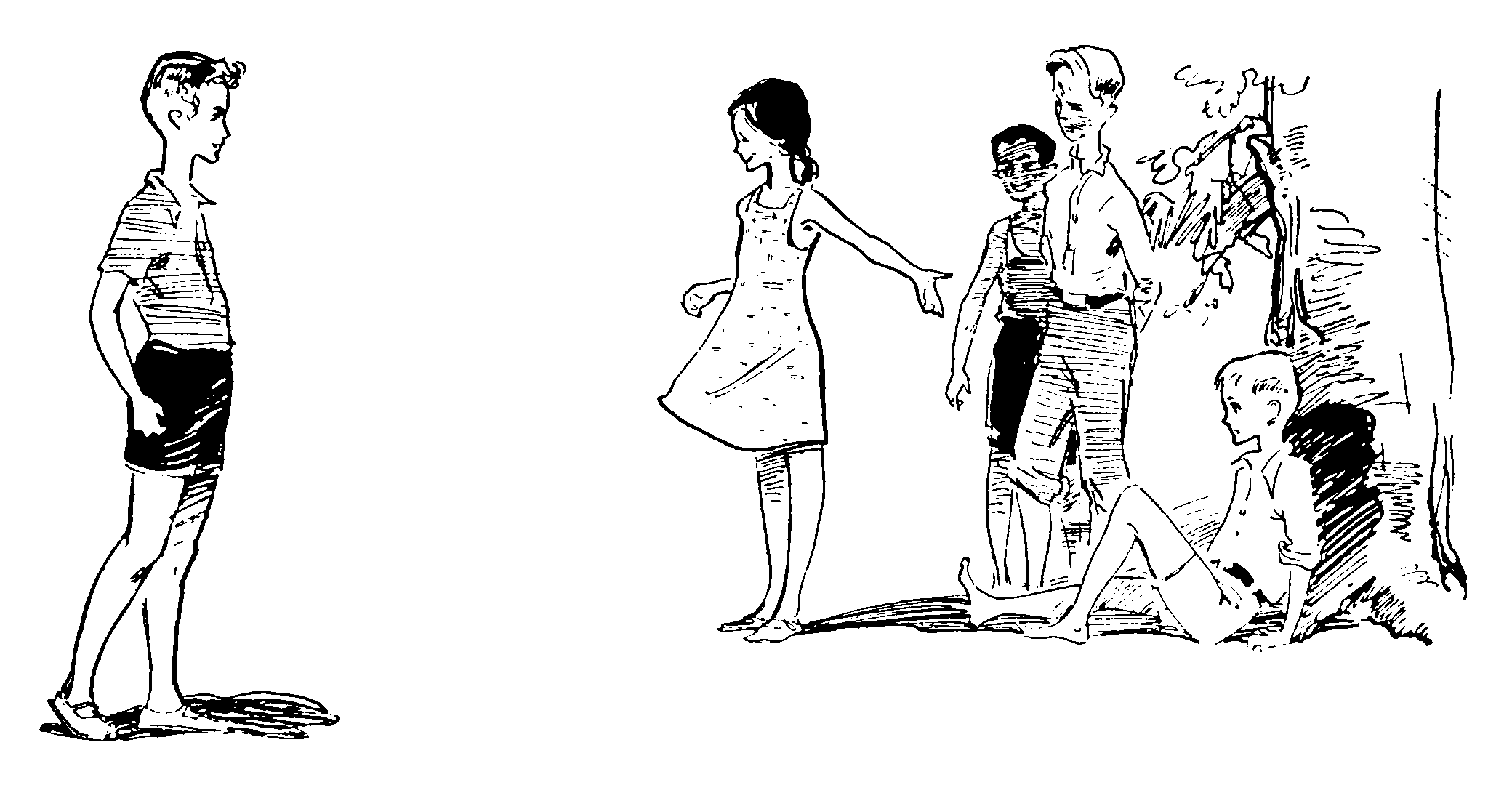 — Подумаешь! — засмеялась она и в тот же миг оттолкнулась от забора, не удержалась на ногах и упала. Тоша подбежал к ней и протянул руку. Девочка сделала вид, что ничего особенного не произошло, и поднялась сама.