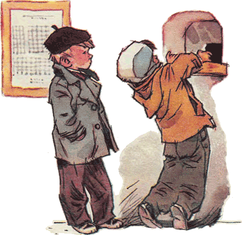 — Сейчас я найду, — сказал Костя и тоже исчез под стулом. — Ай! — послышалось вдруг откуда-то снизу. — Дядя, пустите! — Кто это там? — Это я. — Кто — я? — Я, Костя. Пустите меня! — Да я ведь не держу тебя. — Вы мне на руку наступили! — Чего ж ты полез под стул? — Я замазку ищу.