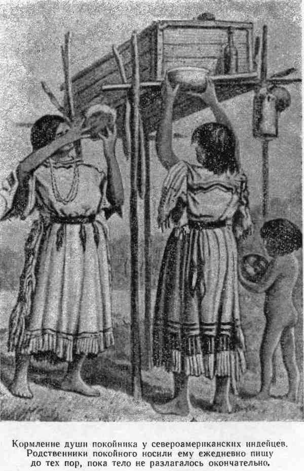 Из приведенных примеров видно, что многие элементы современного культа предков имеются уже у первобытных народов. Эти элементы сохранились в полной неприкосновенности в религиозном быту культурных народов в виде наивной веры в загробную жизнь, в связь между покойниками и их родственниками на земле, в пользу обращенной к покойникам молитвы, в необходимость приносить на их могилы дары и т. п.