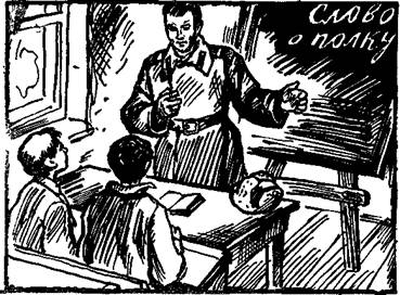 Сержант Сергей Животенков, командир орудийного расчета, до войны был преподавателем русского языка в средней школе. Многим из нас, привыкшим к исполняемому сегодня делу, кажется иногда, что дело, которое мы исполняли до этого, мы любили меньше. Подобная мысль возникла в голове сержанта Животенкова, и обстоятельства, при которых она возникла, были следующие. Ранней весной, когда перелески изобиловали снегом, а в поле под лучами свежего ветреного утра появились уже цветочки, противотанковый артиллерийский полк, шедший на запад, вдруг поворотил к югу и стал пересекать длинное село, едва ли не самое длинное во всей Смоленщине. Видно, что немцы и жгли-то его, и взрывали, и растаскивали на блиндажи, а оно все стоит и стоит, упрямо поблескивая на солнце своими рыжевато-бурыми соломенными крышами. Вот школа. Кирпичное здание ее разрушено наполовину. Нет физического кабинета, библиотеки, общего зала. Но во второй половине, если постараться, можно еще работать. Начальник связи, далеко высовываясь из машины, подъехал к батарее. Он передал приказание полковника: «Задержаться в селе на полчаса… дальнейшие распоряжения получите дополнительно!..» И тотчас же замолкли моторы, прекратился грубый лязг тракторных гусениц — и все услышали легкий шум ветвей, колеблемых весенним ветром, шелестящий шепот ручейков, струящихся из-под снега… Что-то простое, деревенское полилось всем в сердце… Животенков вспомнил весенние испытания, которые он проводил у себя в школе, там, в Тамбовской области. Они всегда сильно волновали его. Ведь узнаешь, что тебе удалось сделать за зиму!.. Дверь в здание школы открыта, вернее, сорвана с петель. Он вошел. Во втором этаже слышались голоса. Он поднялся по лестнице, на которой лежали груды затвердевшего синеватого снега. Несколько мальчиков усердно рылись в большом ворохе чего-то рыхлого, пепельно-серого. Несмотря на весенний ветер, шатавший разбитые рамы, кислый и прогорклый запах наполнял комнату. Мальчики услышали характерный стук солдатских сапог, но голов не подняли. Население у фронта всячески старается удалить войну из памяти… — Учебники ищете? — спросил сержант. — На курево! — ответил мальчик постарше, не догадываясь, что перед ним учитель. — Научились, хватит… — Эвон фашисты как постарались, — сказал второй, уродливо кривя лицо, — луну, звезды скорее найдешь здесь, а не книгу! Протухлый, отвратительный запах в комнате, тощие лица детей цвета ржаного хлеба, их хриплые голоса — все это в душе сержанта подняло высокую волну простого и безыскусственного сострадания. Тоном опытного учителя он сказал: — Будет врать, ребята. Вы давно не учились, и понятно, что скучаете по книге. Где ваши учителя? Та-ак… Выходит, что же? Двоих вроде убили в партизанах, третья ушла с нашей армией. Печальное дело, но не унывайте. Мы пришли и отсюда уже не уйдем. А пока… — Он посмотрел на часы: — Семь утра. Так вот, ровно через три дня, в семь утра, я даю вам урок русского языка. Понятно?.. Полк? Ну, будет ли здесь стоять мой полк или уйдет — это вас не касается, поскольку военная тайна. А я лично приду. Урок будет по теме — героический эпос «Слово о полку Игореве». Животенков превосходно изучил особенности войны, разбираясь в них с легкостью, как в падежах. Например, по двум-трем фразам, брошенным начальником связи, Животенков понял, что полк простоит