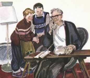 Я дедушка. Бывает, вспомнится — и расскажу что-нибудь из своей жизни. Слушатели мои — внук Алёша и его приятель Саша. Один первоклассник, другой второклассник уже. Алёша темноволосый, Саша светленький. За играми — то вместе, то врозь по углам. То дружат, то подерутся. Но стоит мне начать про войну — сразу между ними мир и согласие. Сядут в обнимку, дыхание затаят, слушают. Вот и сегодня у нас вечер рассказов. Готовиться мне недолго: сам участвовал в боях — и с белогвардейцами в гражданскую войну, и с немецкими фашистами — в нынешнюю. А пока читаю газету. Жду, когда Алёша приготовит уроки. — Кончил! — говорит он наконец и подаёт мне тетрадки. Проверяю. Всё правильно. Ждём Сашу. Он в нашем же доме, только выше этажом. Но вот и сам Саша. Влетает вихрем: — Нн-нне… опоздал? Я откладываю газету. Можно начинать. Однако не так-то просто усадить Сашу. У него новость: — Слыхали, какая появилась машина?.. Арифметику делает. Только сунь в неё тетрадку, нажал кнопку — и готово. В полсекунды задачу решает. Хоть самую трудную. А надбавь ещё несколько секунд — за всех школьников решит. Даже за весь город может… Вот здорово, а? Эх, мне бы такую машину. На день рождения — вместо всяких там подарков! Саша не забывает и друга. — Я и за тебя, — говорит, — кнопку нажму. Обязательно. Но Алёша в арифметике силён. Вот если бы от уроков труда избавиться — другое дело. Задают клеить коробки, а у него пальцы склеиваются. Будто в перепонках, как у гуся. — Деда, — говорит Алёша, называя меня на свой лад. И заглядывает в глаза. — Скажи, а ты подарил бы мне машину? — Это чтобы клеила коробки? А тебе только кнопку нажимать? — Ага! Щёлк — и класс завален коробками до потолка! А ещё… У Алёши, вижу, глаза разгораются. Ему уже мало коробок: все задания по труду готов свалить на машину. — Эх, — говорю, — мальчики, мальчики… Да ведь от таких ваших машин не польза, а вред! В самом деле. Представьте, что вдруг бы появились машины, которые всё делают за человека… Алёша и Саша переглянулись. — А чем плохо? Это даже очень хорошо! — Согласен, — говорю, — хорошо! Но надолго ли?.. Вот идёт поезд. Вдруг что-то испортилось. Машинист тычет в кнопку, тычет, а поезд ни с места. Что испортилось, машинист не знает, ведь его учили только кнопки нажимать. Значит, слезайте, пассажиры, в чистом поле, тащитесь с чемоданами пешком. Ещё пример. Мельница. Зерно мелют машины — мельнику только кнопку нажать. Бац — в машинах поломка. И целый город остаётся без хлеба. Кто же вновь пустит мельницу? Да никто. Ведь люди умеют всего лишь нажимать кнопки. Так, одна за другой, износились бы, поломались все машины на свете. Выпали бы кнопки из гнёзд — значит, и нажимать не на что!.. И остались бы люди без хлеба, без одежды, без домов, без поездов. Слушатели мои притихли. Молчат, озадаченные. — Есть, — говорю, — о чём подумать, не правда ли. — Мы подумаем, — согласились оба. — А про войну будет? — Конечно! Я же обещал. И рассказал я ребятам вот какую историю…