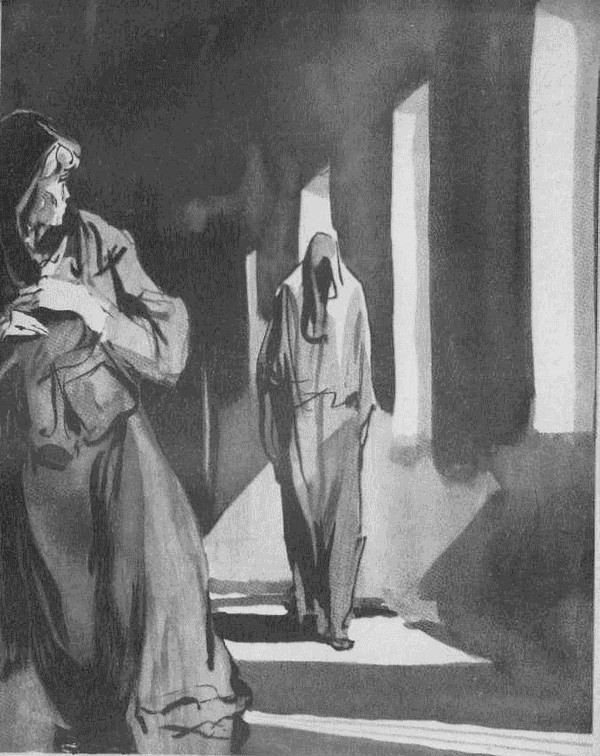 Какая-то темная бесформенная фигура появилась в конце коридора. Эта фигура приближалась; она пересекла полосу света, погрузилась во мрак и снова возникла в полосе света, затем снова растаяла во мраке и снова вышла на свет. Теперь она уже миновала половину коридора и продолжала приближаться к Кэт. Оцепенев от ужаса, Кэт не в силах была двинуться с места и ждала. Тень приближалась. Вот она снова вышла из мрака и вступила в последнюю полосу света. Она направлялась прямо к Кэт. Боже праведный! Перед Кэт стоял доминиканский монах! В холодном свете луны четко вырисовывалась его изможденная фигура в мрачном одеянии. Крик смертельного ужаса прорезал тишину старой обители и несчастная девушка, всплеснув руками, упала навзничь без чувств.