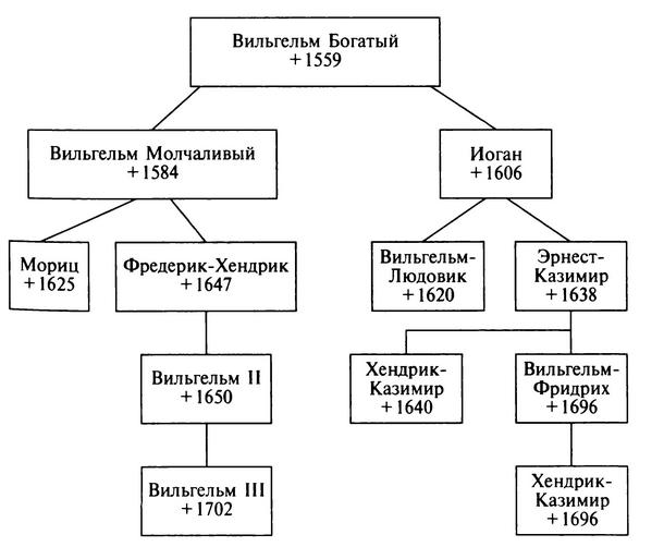 Представители младшей ветви, начиная с Вильгельма-Людовика, были штатгальтерами Фрисландии и Гронингена.