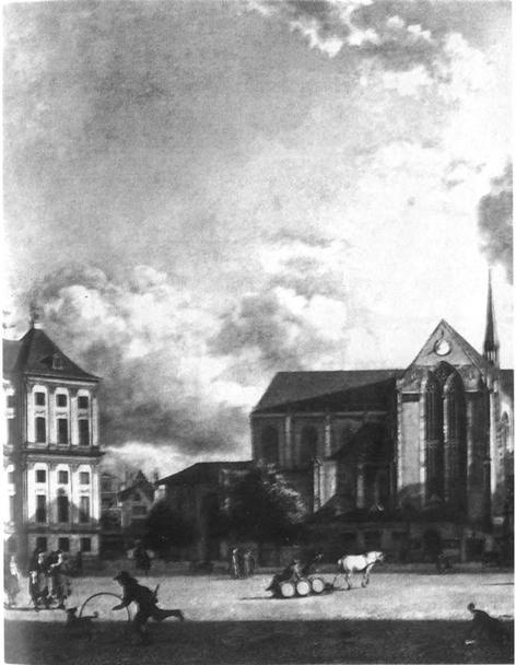 Ян ван дер Хейден. Вид на дамбу Амстердама. Около 1650. Амстердам, Рейксмюсеум.