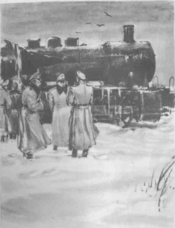 «В занятых врагом районах нужно создавать партизанские отряды, конные и пешие, создавать диверсионные группы для борьбы с частями вражеской армии, для разжигания партизанской войны всюду и везде, для взрыва мостов, дорог, порчи телефонной и телеграфной связи, поджога лесов, складов, обозов. В захваченных районах создавать невыносимые условия для врага и всех его пособников, преследовать и уничтожать их на каждом шагу, срывать все их мероприятия».Когда налет окончился, Чебриков крикнул рабочим: — Ну, ребятки, слыхали, что сказал нам товарищ Сталин? Мы должны быстрее продвигать транспорт с войсками и военными грузами. За работу! Дядя Костя молчал. Он давно видел: речь вождя захватила, воодушевила народ. Никаких других слов не надо. Деповцы с еще большим рвением кинулись к своим станкам.