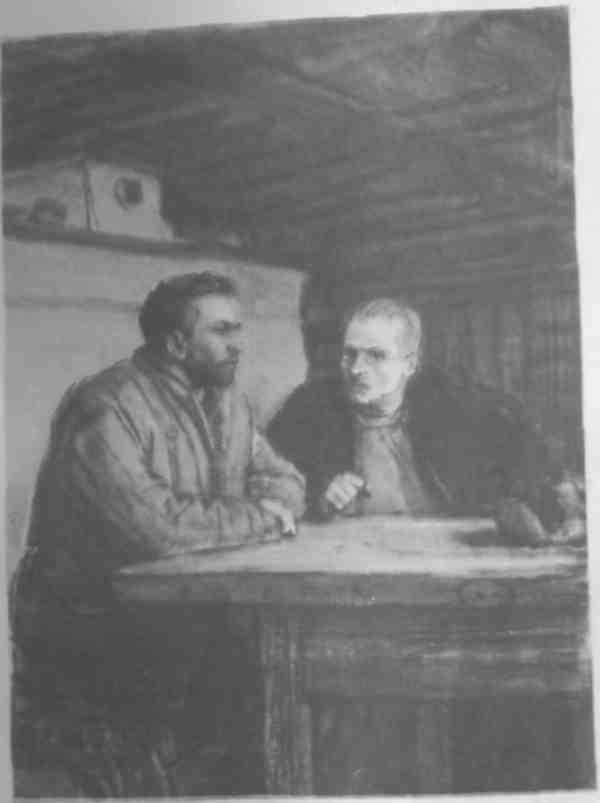 Заслонов и Алексеев сговорились пойти вечерком к Птушке. Иван Иванович уже работал на старом месте в механическом цехе простым токарем. Заслонов хотел сколотить свое ядро среди ремонтников, и потому надо было поразузнать о настроении токарей. В этот раз они у Птушки не отказались от скромного угощения, — ели и разговаривали о том, о сем. Когда окончили ужин и Марья Павловна унесла на кухню посуду, Заслонов спросил: — Как чувствует себя Островский? — Плохо, — ответил Птушка. — Он ведь работает, — спокойно, как бы невзначай, вставил сбоку Алексеев. — Да, работает. Но как может чувствовать себя советский человек, работая у врага? Алексеев, потупив голову, что-то чертил ногтем по скатерти и сдержанно улыбался. Заслонов, наоборот, был серьезен и пытливо смотрел на Ивана Ивановича. — А Мамай? — спросил Заслонов. — Ну, Мамай — предатель. Тому что? Мамай прекрасно себя чувствует: он ждал фашистов! — А много ли прежней молодежи у вас, Иван Иванович? — перевел Заслонов разговор на то, что особенно его интересовало. — Кое-кто: Коренев, Пашкович, Домарацкий, Шмель. — А они как? — Молодежь-то? — переспросил Птушка. Он оглянулся кругом. В обоих окнах были вставлены зимние рамы, к счастью, сохранившиеся на чердаке. — У молодежи, Константин Сергеевич, — понизив голос, начал Птушка: — настроение, — он еще раз оглянулся и выпалил решительно, — боевое! — И потом затворил, всё больше и больше оживляясь: — Чего тут сидеть сложа руки, когда вся страна отбивается от проклятых фашистов! Помочь надо, а не ждать, когда за нас сделает кто-то другой! Сколотить отряд. Вот машинист Ходасевич, старый буденновец. Ему команду — и всё. А мы чего-то ждем! Иван Иванович выпалил всё одним духом и, откинувшись на спинку стула, смотрел прямо в глаза Заслонову. Константин Сергеевич всегда уважал его. Птушка привык ему верить. Сейчас он высказал самое свое сокровенное, разволновался и вдруг с ужасом спохватился: «А что, если Заслонов выдаст меня? Нет, нет! Не может быть!» Кровь бросилась ему в лицо. Иван Иванович сидел, ожидая удара. Константин Сергеевич понял переживания Птушки. Лицо его утратило прежнюю настороженность, и посветлело. Он обернулся к Алексееву: — Анатолий, ты еще ничего не говорил Ивану Ивановичу? Алексеев понял: этот вопрос Константин Сергеевич задает ради Птушки, чтобы показать ему, будто они и раньше доверяли Ивану Ивановичу. Заслонов прекрасно знал, что Алексеев, без его разрешения, ничего никому сказать не мог. — Нет еще. — Ну, так вот, дорогой Иван Иванович… — сказал Заслонов, придвигаясь со стулом к Птушке. Он опасливо покосился на дверь. — Никто не войдет. Жена моет посуду, — успокоил Иван Иванович. — Говорите смело!X