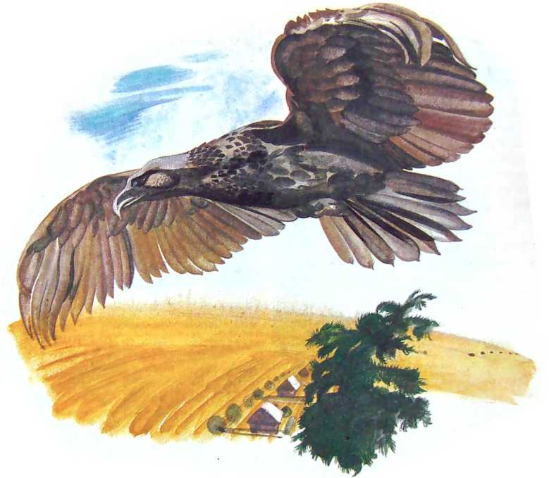 От орла пахло птичником, который давно не проветривали, и, слыша запах неопрятной от дряхлости птицы, мальчик вежливо чихнул, на что орёл несколько подался назад и пробормотал: