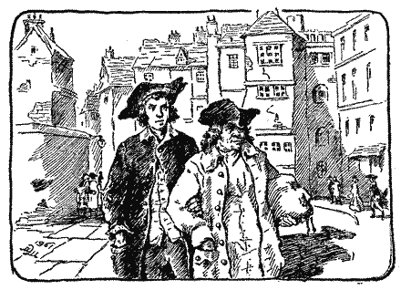— Досить рахувати зуби, — сказав він. — Мене, джентльмена, образили. Де ви чули, щоб королівському офіцерові насмілились говорити, що він не знає англійської мови? Ми маємо шпаги, та й Кінгс-Парк недалеко. Підете самі вперед чи показати вам дорогу?
