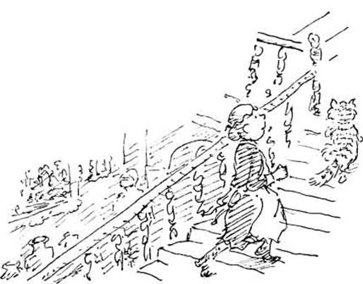 И они слезли с кровати и направились по широкой лестнице с резными перилами, вниз, к столовой, поскольку наступило время чая.